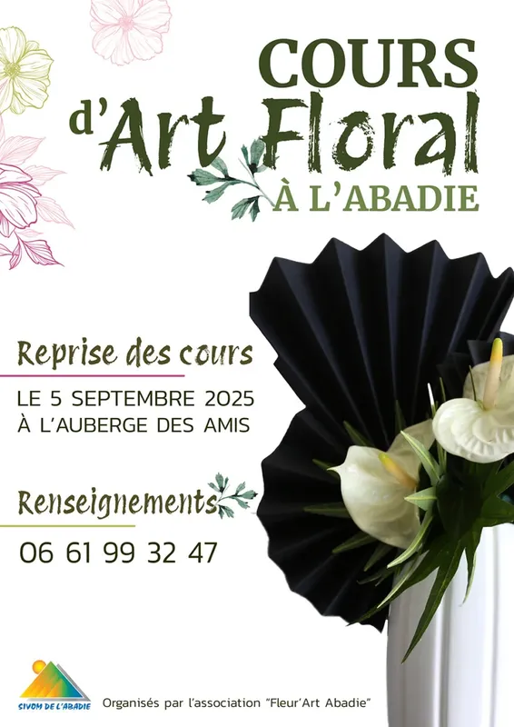 Participez à nos cours d'art floral organisés par l'association 'Fleur'Art Abadie' à l'Auberge des amis de l'Abadie, à Saint-André-de-la-Roche, de septembre 2025 à juin 2026. Que vous soyez débutant ou amateur passionné, ces ateliers vous aideront à exprimer votre créativité tout en apprenant des techniques de composition florale. Inscrivez-vous dès maintenant pour faire fleurir votre passion !