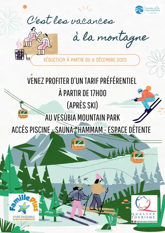 Venez vous détendre après une journée sur les pistes de ski à Vésubia Mountain Park. À partir de 17h, bénéficiez d'un tarif préférentiel sur l'espace aquatique et de bien-être. Plongez dans un univers de relaxation où le sauna et les bassins vous attendent. Rejoignez-nous à Saint-Martin-Vésubie, entre neige et nature, pour un moment de sérénité bien mérité cet hiver.