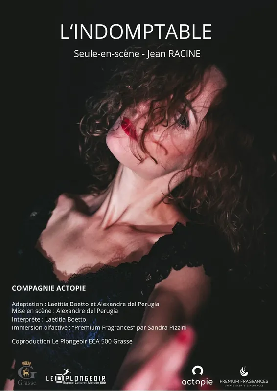 L’indomptable est un seule-en-scène composé exclusivement de vers de Jean Racine extraits de motore a amour. On voyage poenque et organique uo cœur des mots de Racine qui a su, comme personne, parler des femmes amoureuses et leur rendre hommage. Un hymne à la vie, à l’amour, aux femmes, à leur sensibilité, leur force, leur courage et leur détermination. L’héroïne de cette adaptation plongera toute entière dans l’amour quitte à risquer de s’y noyer... D’après Jean Racine. Mise en scène Alexandre del Perugia. Interprétation Laetitia Boetto. Adaptation Laetitia Boetto, Alexandre del Perugia. Tout public dès 7 ans Billetterie : de 10€ à 18€. Billetterie du Théâtre de Grasse. Possibilité de retirer des contremarques à l’Espace du Thiey