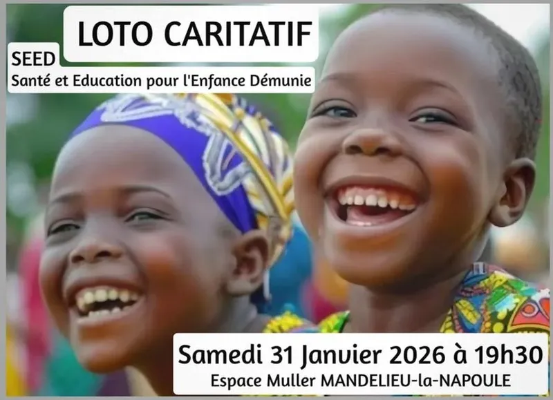 Le samedi 31 janvier 2026, rejoignez-nous à l'Espace Maurice Muller de Mandelieu-La Napoule pour un Loto caritatif organisé par l'association SEED. Cet événement a pour but de soutenir la santé et l'éducation des enfants défavorisés. En participant, vous pourrez gagner de superbes lots tout en contribuant à une cause noble. Venez nombreux pour passer une soirée de divertissement tout en faisant la différence dans la vie des enfants dans le besoin.