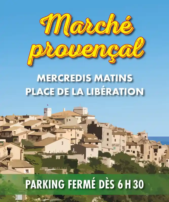 Le marché provençal de Tourrettes-sur-Loup se tient chaque mercredi matin de 8h à 13h30 sur la place de la Libération. En période estivale le marché s'entend sur l'ensemble du parking de la Libération. Hors saison seule la moitié sud du parking est occupée permettant ainsi le maintien d’une partie du stationnement. ▲ À compter du mercredi 7 mai 2025 et durant toute la période estivale le stationnement sera interdit sur l’intégralité du parking de la Libération tous les mercredis entre 6h30 et 14h30.