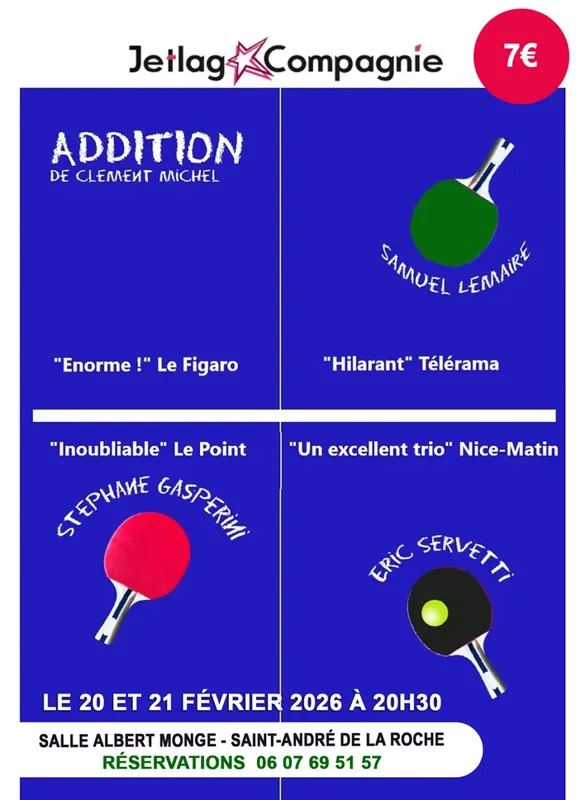 Venez découvrir la pièce de théâtre captivante 'L’addition', présentée à la Salle Monge à Saint-André-de-la-Roche. Cet événement culturel se déroulera du 20 au 21 février 2026 et promet d’être une soirée enrichissante. Plongez dans l'univers théâtral et laissez-vous emporter par la performance envoûtante des acteurs. Ne manquez pas cette occasion de vivre une expérience artistique unique dans votre ville.