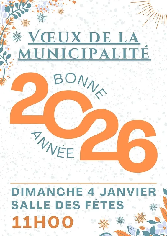 Le 4 janvier 2026, ne manquez pas les voeux de la municipalité à Tourrette-Levens à 11h dans la salle des fêtes Maurice-Couret. Cet événement convivial sera l'occasion de partager les projets à venir et de renforcer les liens communautaires. Venez célébrer l'année qui commence avec vos voisins et les membres de la municipalité. Cette rencontre festive sera l'occasion de vivre un moment chaleureux et inspirant. Soyez des nôtres pour démarrer l'année sur une note positive.
